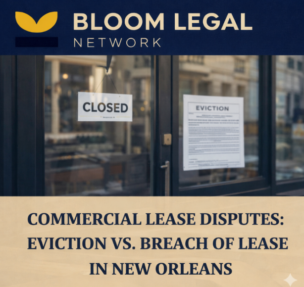 In Louisiana, that distinction matters far more than most people realize. Eviction and breach of commercial lease are not interchangeable remedies. Choosing the wrong path early can quietly limit your leverage, delay resolution for months, or unnecessarily escalate costs. At Bloom Legal Network, we see these commercial lease disputes unfold across Southeast Louisiana every week—often with one side misunderstanding what the law actually allows them to do.
