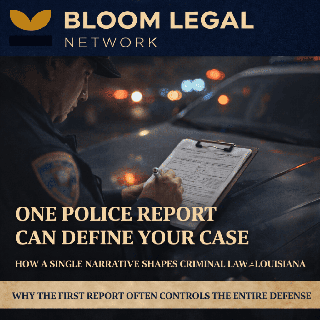 It is the most common—and most dangerous—assumption we encounter at Bloom Legal Network. In the world of criminal law in Louisiana, many people believe that a police report is a neutral record of facts, a “he-said, she-said” document that gives equal weight to both sides. The reality is far more clinical and far more consequential. By the time a deputy in Jefferson Parish or an officer in New Orleans finishes their narrative, the trajectory of your case has often been set. Before you ever stand before a judge or speak to a prosecutor, that single document acts as the foundation for everything that follows. It isn’t just a summary; it is the lens through which the state views your character, your intent, and your guilt.